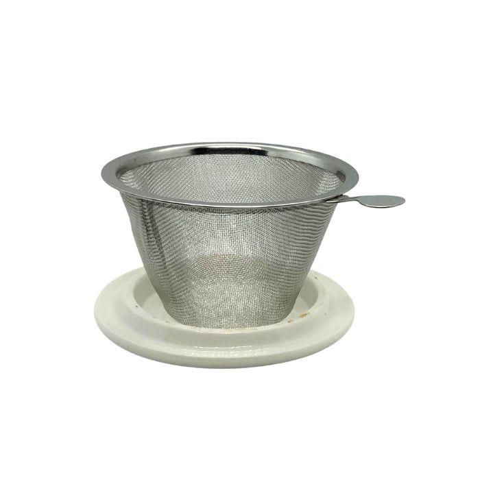 - Preparación del té: Coloca hojas de té sueltas en el infusor de acero inoxidable de la taza. Llena la taza con agua caliente (preferiblemente justo antes de hervir).